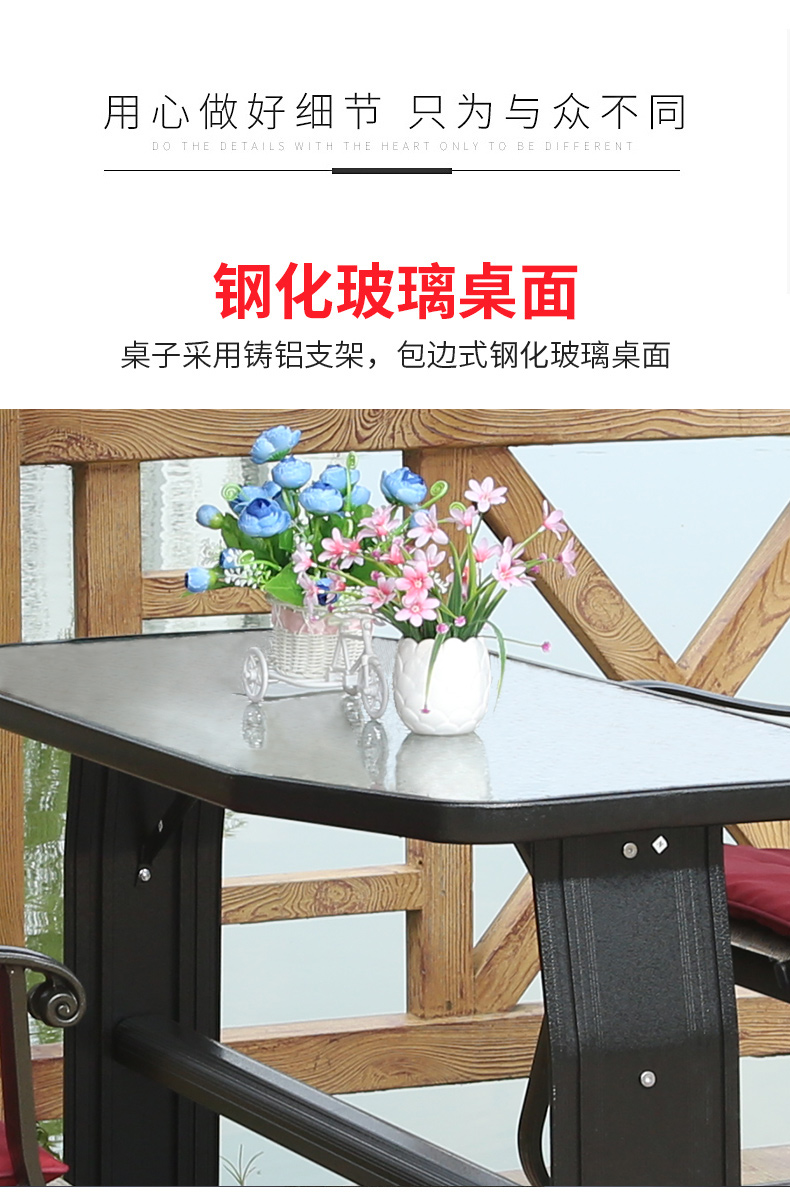 庭院摆放一套户外铸铝桌椅,适合休闲聚会,增加庭院氛围感