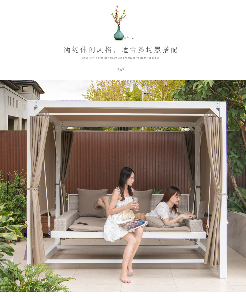 休闲阳台放一个秋千吊篮,闲时饮茶看书,生活妙哉